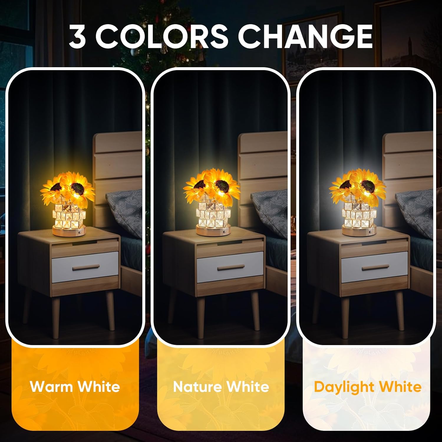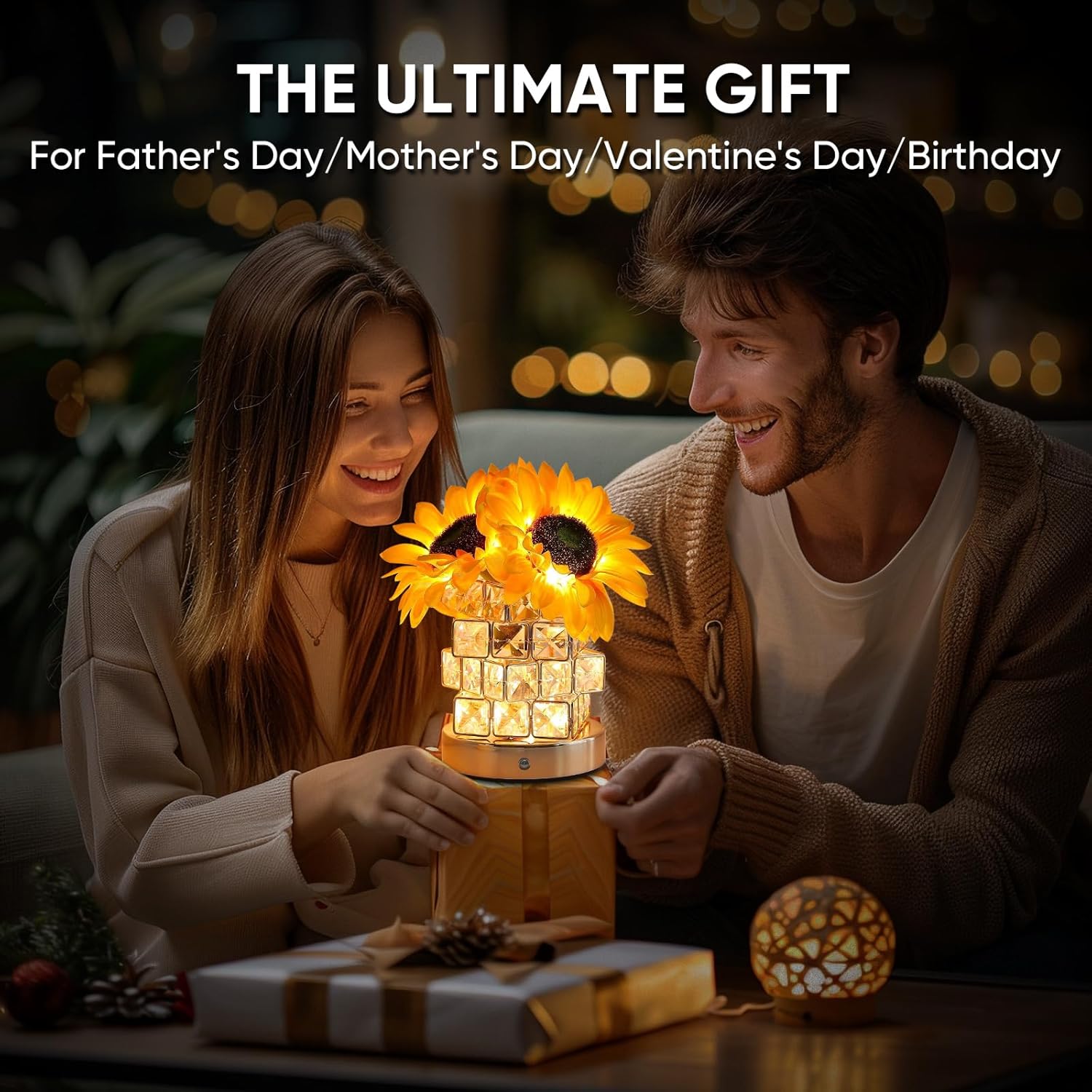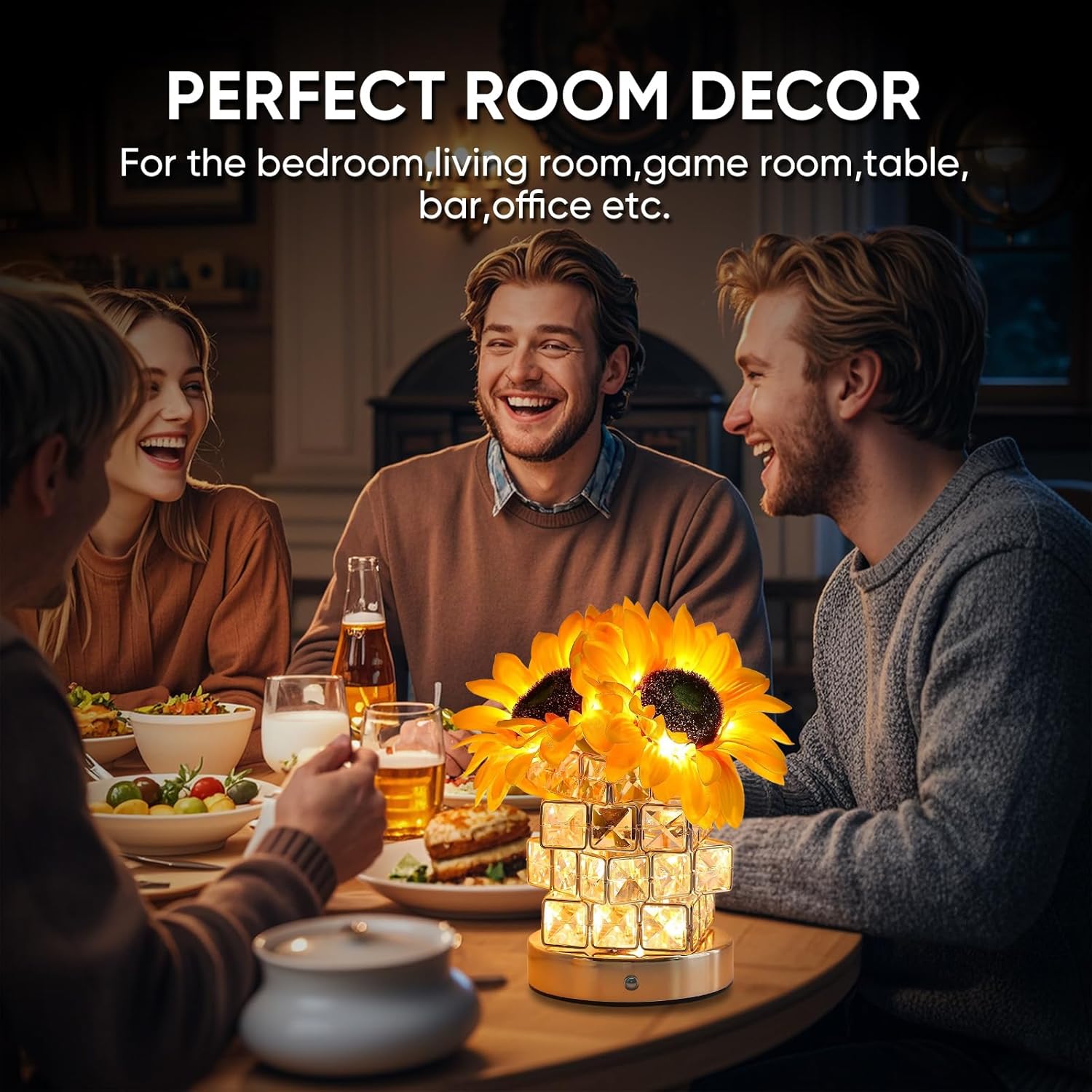 - Ever-Blooming Sunflower Design: Crafted with silk sunflowers and a sparkling crystal-style flower pot, this lamp radiates a gentle golden glow that feels like sunshine indoors. It’s as much a decorative accent as it is a functional light source.