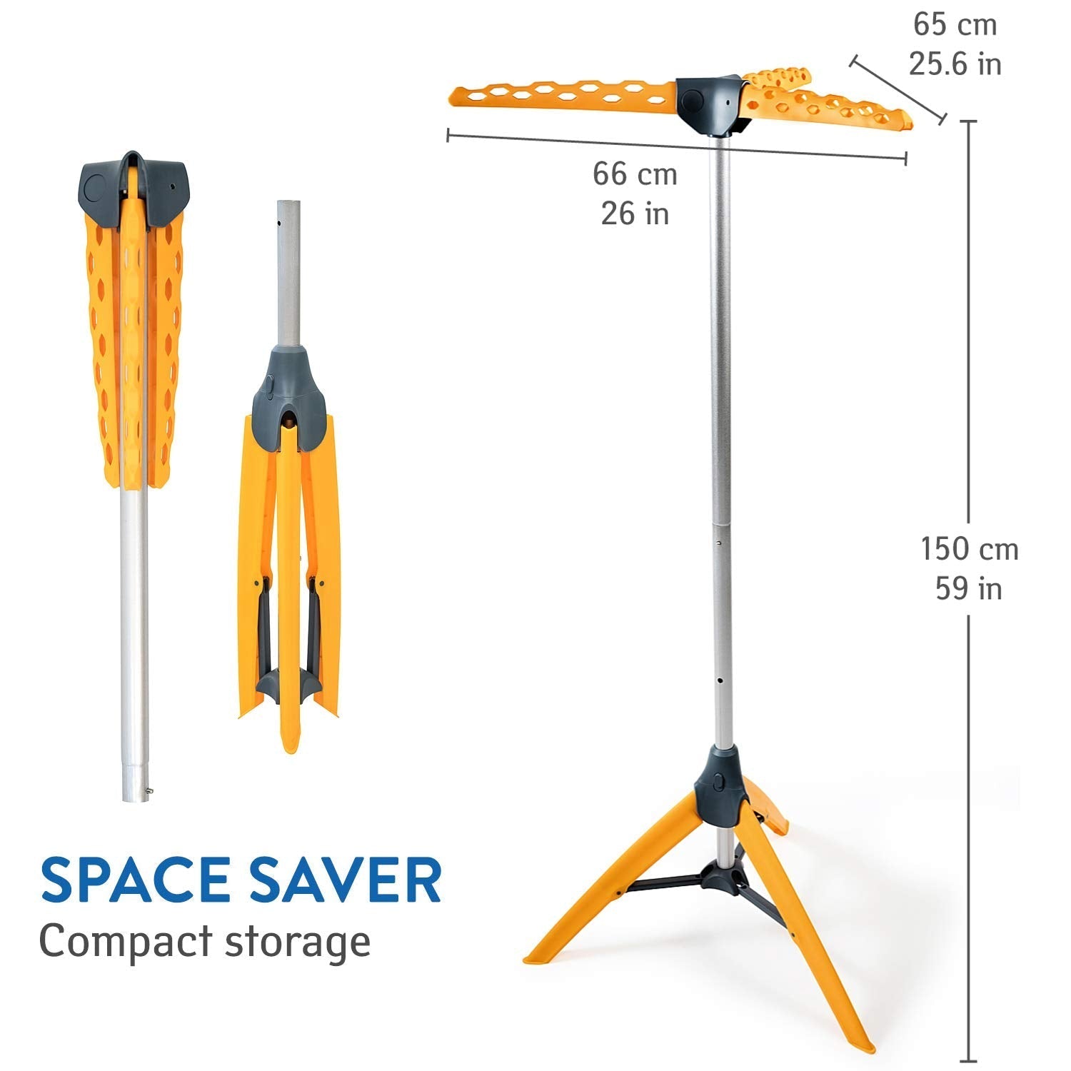 - Arms: 3 fold-out arms for maximum hanging space